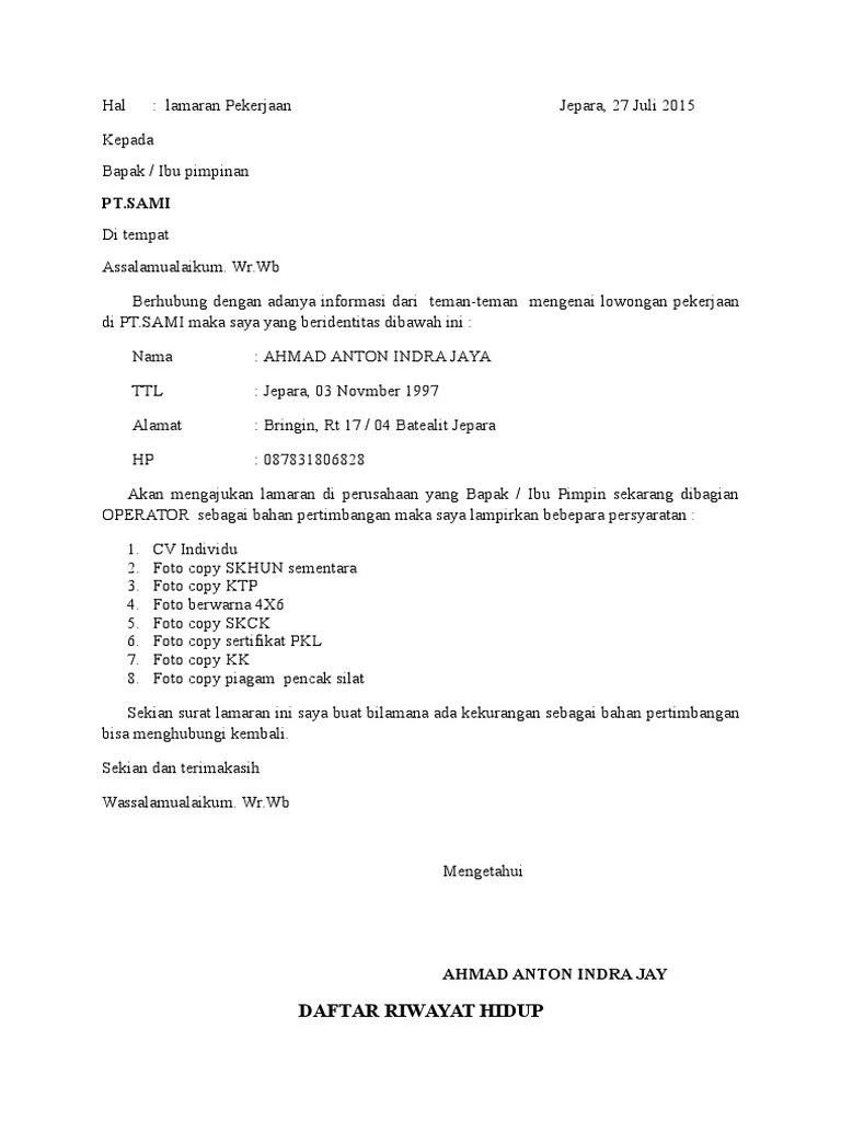 Contoh surat lamaran kerja ini saya buat kepada para pencari kerja agar bisa . Contoh surat lamaran kerja via email. 7 contoh cv lamaran kerja fresh graduate yang baik dan benar. 7 contoh cv lamaran kerja fresh graduate yang baik dan benar. Kumpulan perfect contoh surat lamaran kerja gramedia 76 untuk ide .